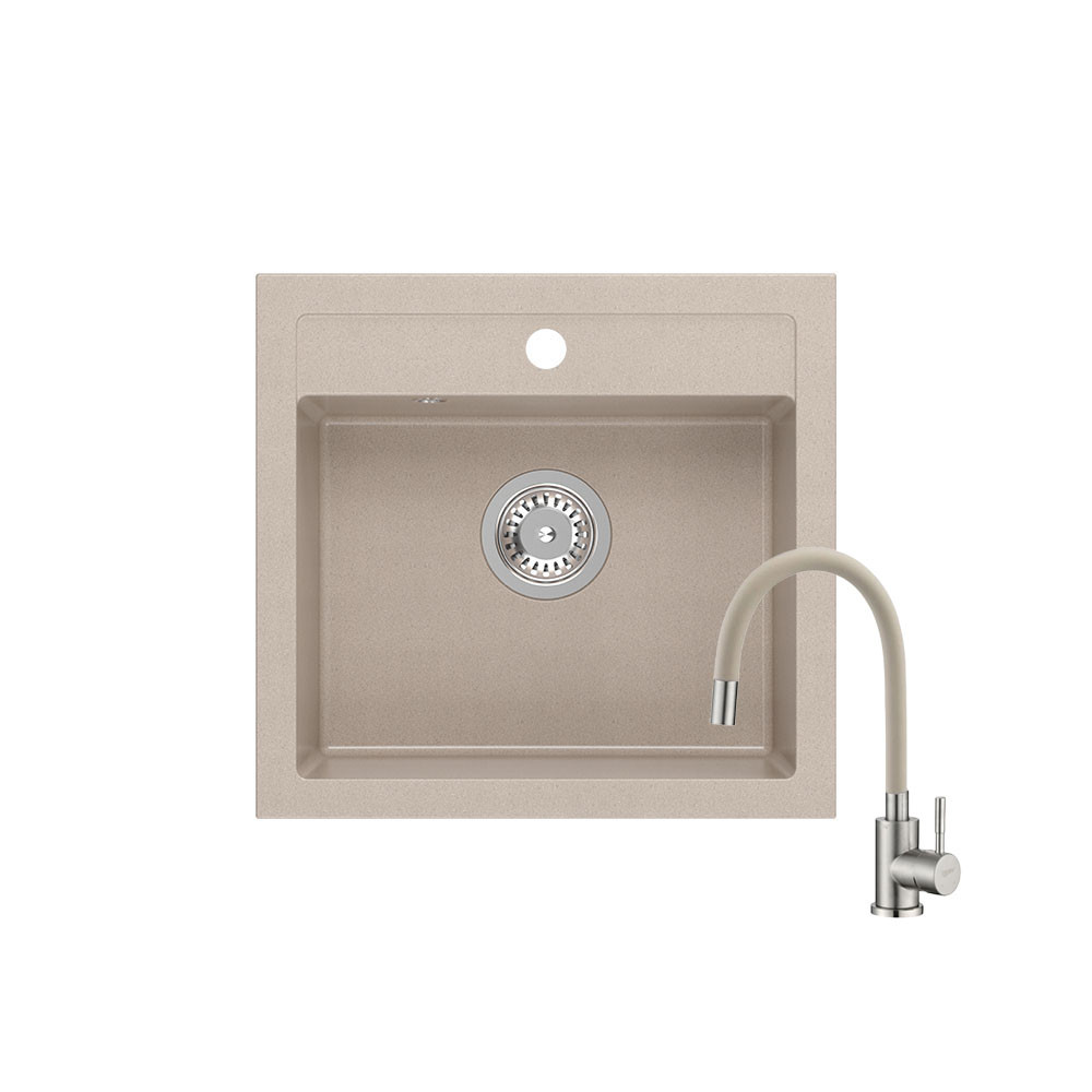 Quadron JOHNNY 110 pearl beige gránit mosogatótálca + Zegor SOP4-F146KS króm csaptelep bézs flexibilis kifolyócsővel