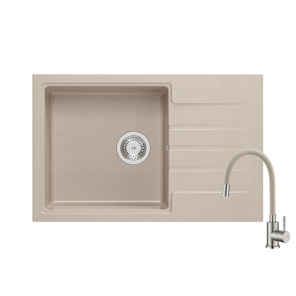 Quadron PETER 111 pearl beige gránit mosogatótálca + Zegor SOP4-F146KS króm csaptelep bézs flexibilis kifolyócsővel